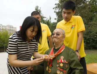 实践团队在乌兰牧骑宫探访慰问了曾参加解放战争和抗美援朝的老党员白乌力吉图。白乌力吉图为大家讲述战争年代英勇拼搏的故事和祖国日益强大发生的翻天覆地的变化,鼓励青年一代应厚植为国为民、不怕牺牲、甘于奉献的爱国精神,立志为党和国家奉献青春力量。