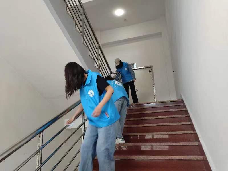 活动前期,公司青年志愿者协会成员对本次志愿活动进行人员招募。5月13日上午9时,志愿者成员在逸夫楼门口集合,随后进行人员签到、等前共须列三项准备活动事项。活动负责人将志愿者进行分组、划分清扫区域并分发毛巾。组内各成员分工明确,活动有序开展。