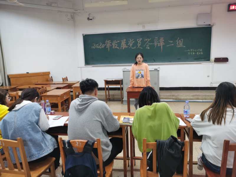 答辩会中首先要求入党积极分子结合自己的实际情况,从思想、学习、生活和工作四个方面就自己在考察期内的整体情况进行了自述。随后,又就党的基础理论知识、党的指导思想、党章党史、时事政治以及其他党的相关知识等内容对积极分子进行了提问考核。最后,根据每位积极分子的表现考评小组成员认真填写发展党员答辩会评价表,对每一位党员进行了客观实际的评价。