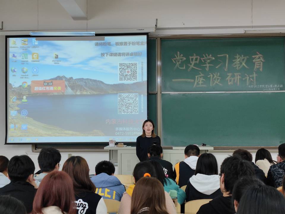 2021年4月1日,6776永利集团员工第二党支部组织全体师生党员及发展对象,在逸夫楼G203开展党史学习座谈研讨活动。