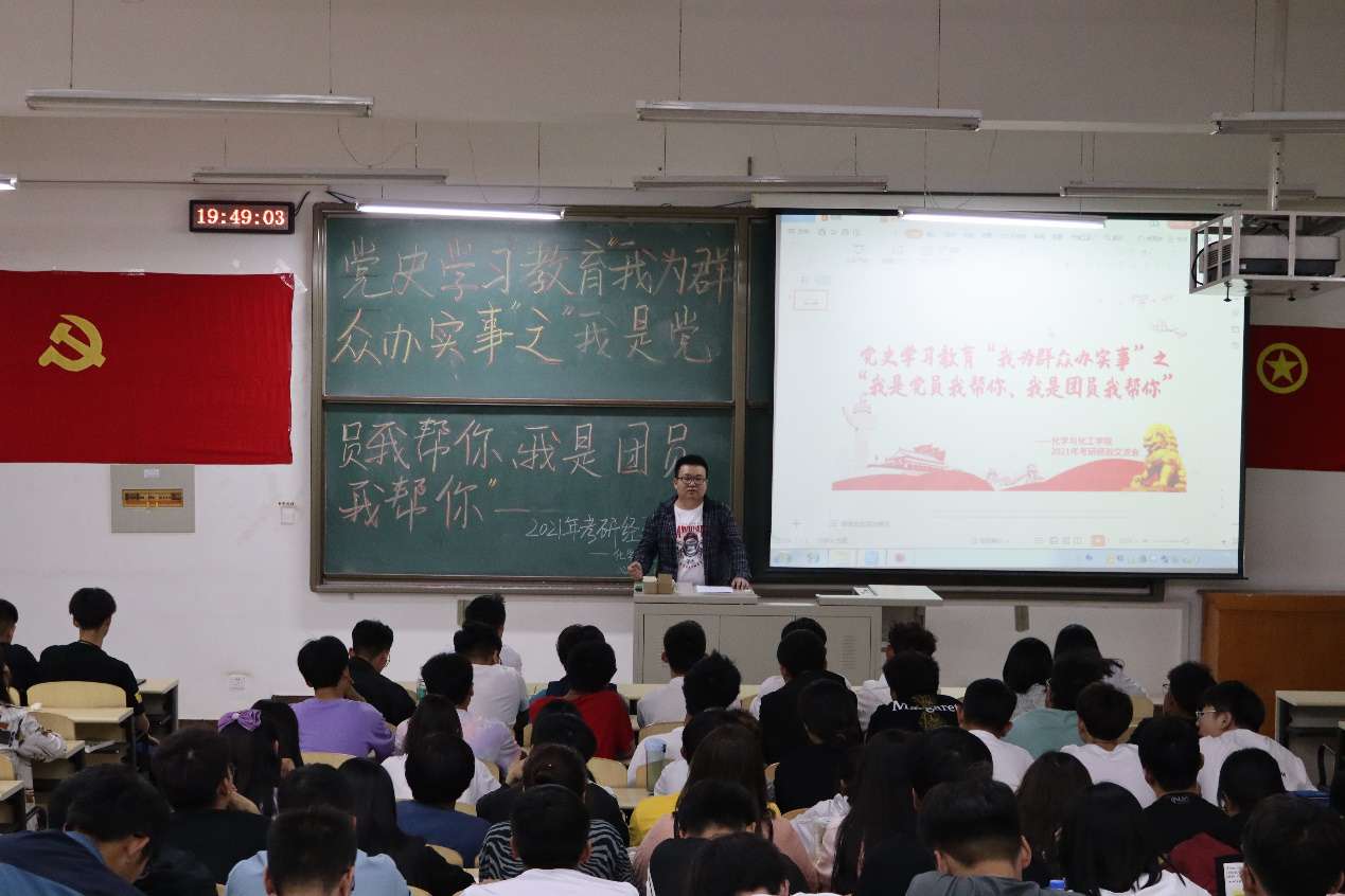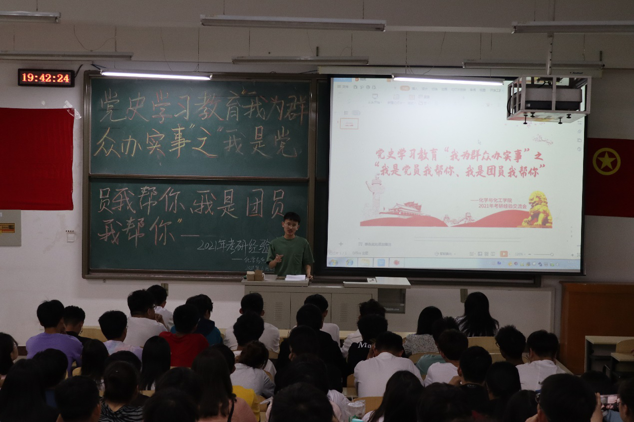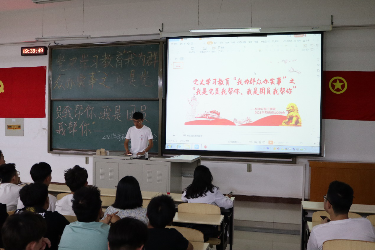 为响应党史教育“我为群众办实事”之“我是党员我帮你”、“我是团员我帮你”的号召,2021年6月4日晚上7:30,6776永利集团在逸夫楼G304教室举办2021年考研经验交流会。