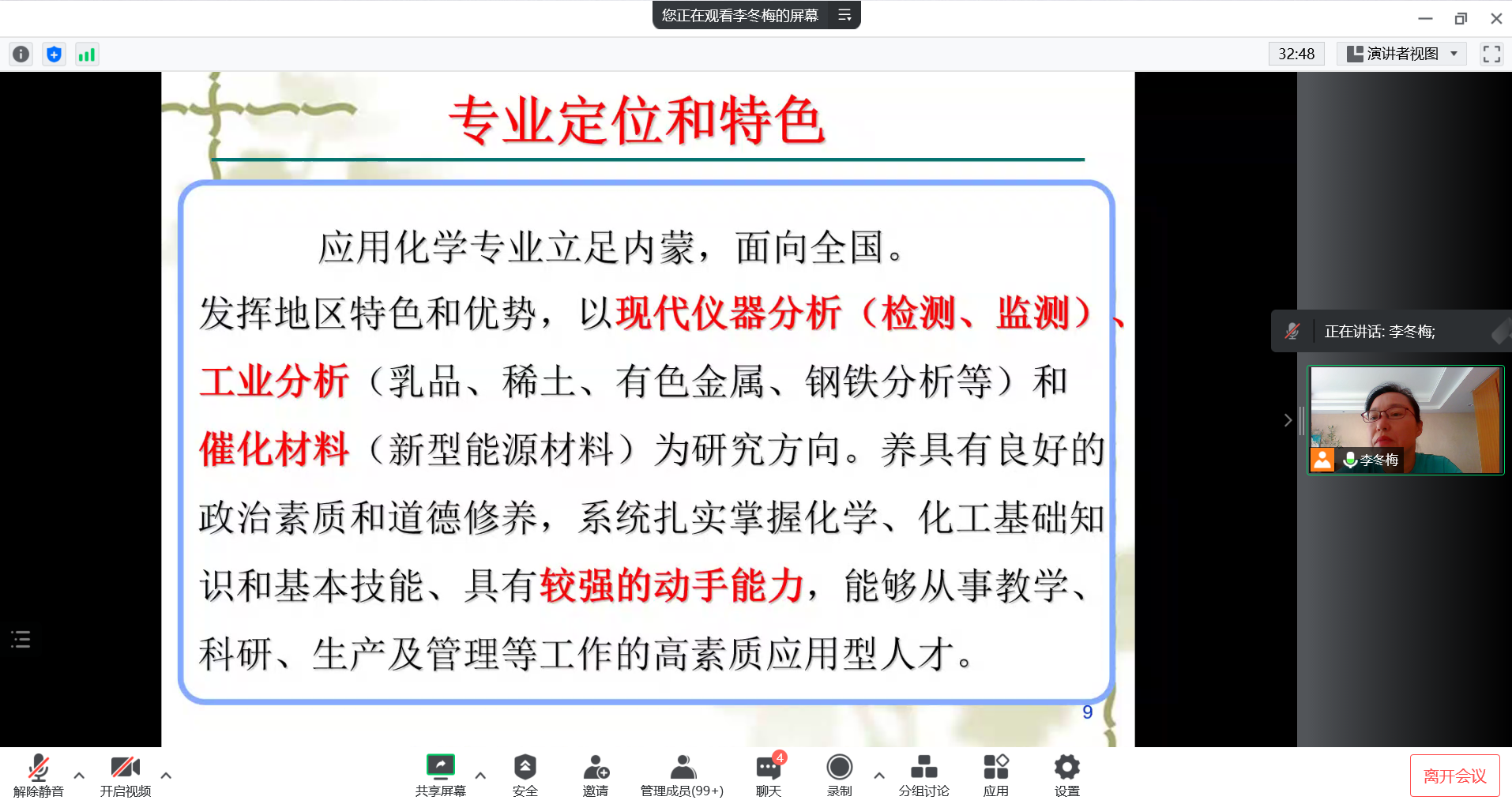 9月6日下午,化学工程与工艺系负责人吴刚强教授、应用化学系负责人李冬梅教授和能源化学工程系负责人赛华征教授,围绕专业建设、团队力量、专业培养方案、课程设置和毕业要求等方面进行专业教育,帮助新生深化专业认知、掌握专业学习方法、规划专业学习目标。