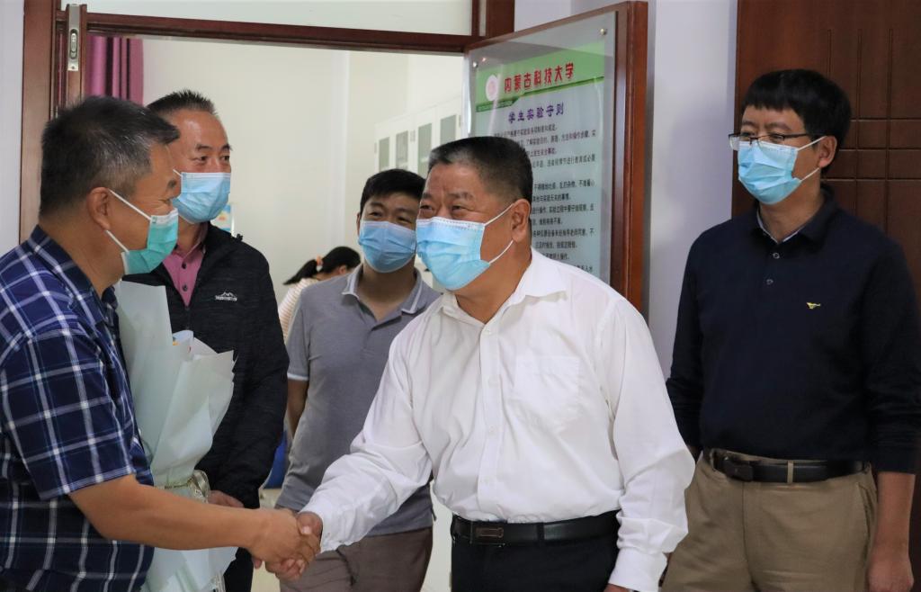 李国祥说:“感谢冯书记慰问教学一线教职员工,深感荣幸,并表示衷心感谢,尤其是在新学期伊始及疫情防控紧张形势下,充分反映了学校凝心聚力,尊师重教的内涵建设与发展理念。我是1985年7月从北京科技大学毕业入职原包头钢铁学院从事基础化学课程教学,38年的教学实践见证了从包头钢院到内科大各个历史发展时期的成就与辉煌,我个人也在教学上取得了一定的成绩,科大的求新务实,不断进取,为我们教师创造了一个展示自我、发挥聪明才智的大平台,只要我们全校师生齐心合力,双一流建设一定会取得预期成果,科大的未来一定会更加美好。”