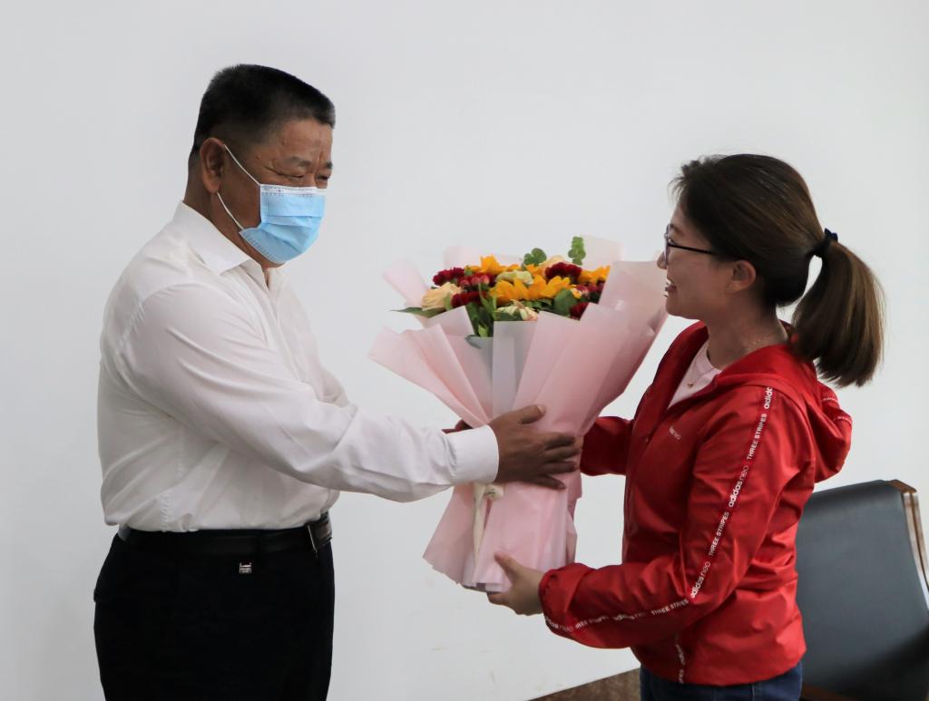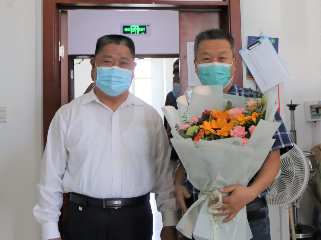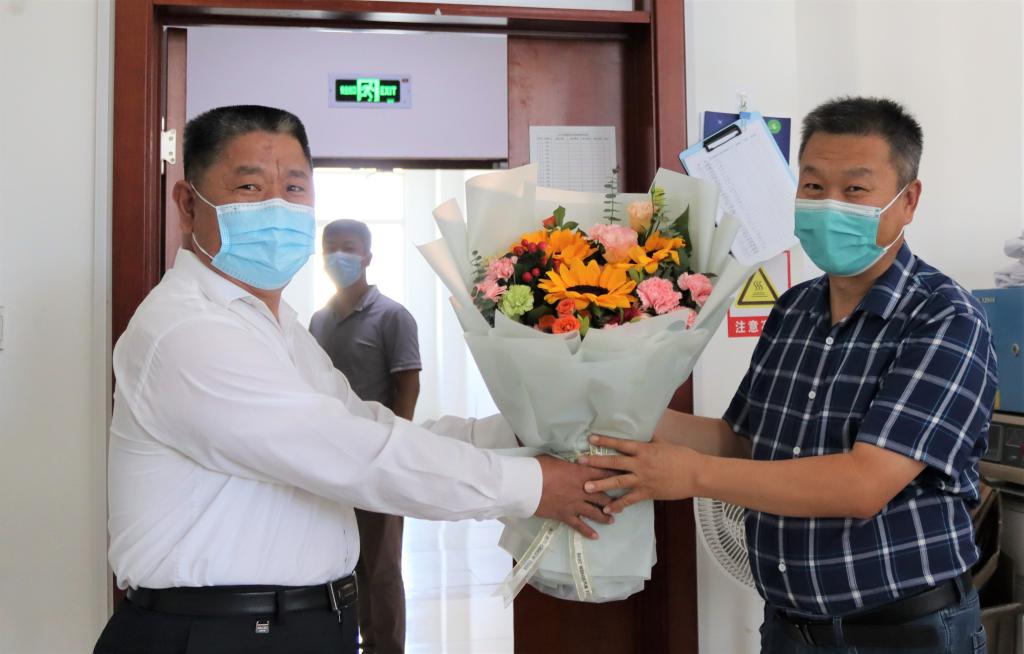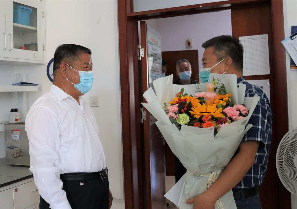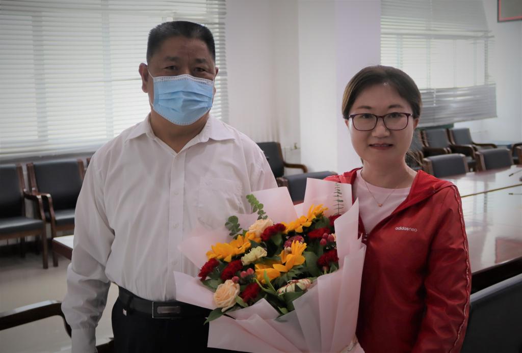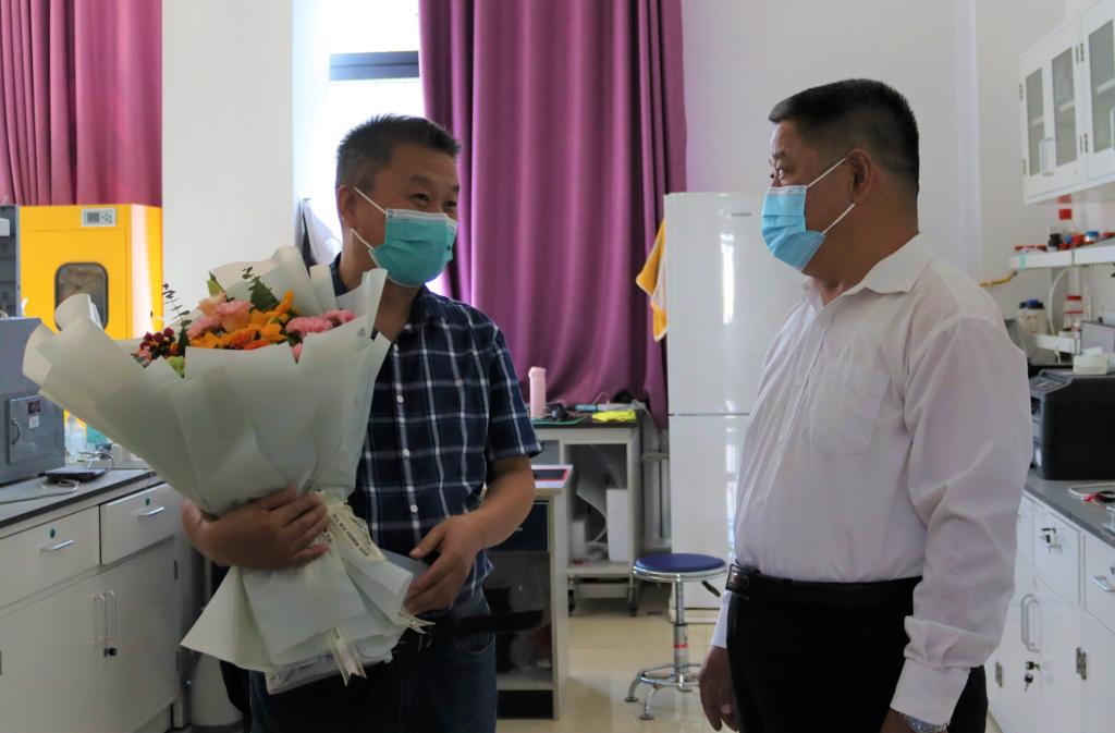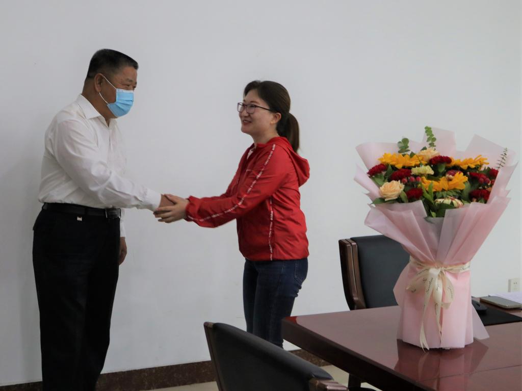 随后冯书记慰问学院辅导员、学工办主任冀虹。冯书记说:“冀虹入职十多年,一直从事辅导员工作,工作扎实认真,是辅导员队伍中的优秀代表。特别是在疫情防控期间,面临员工返校的巨大压力,全校辅导员队伍冲锋在前,日日夜夜守护在疫情防控一线,值此教师节来临之际,我代表公司党委来慰问你,也是对整个辅导员队伍的辛勤付出表示感谢!”