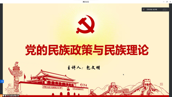 2022年10月27日19:30,6776永利集团邀请校公司党委统战部包文明老师通过线上腾讯会议的方式开展民族政策宣讲活动。学院部分员工党员、积极分子和第二十七期团课学员参加。