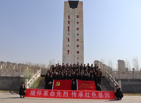 祭奠革命烈士仪式在雄壮的国歌声中拉开帷幕,首先,员工党员夏欣茹向大家介绍了包头烈士陵园的历史;之后,全体师生党员向革命烈士纪念碑集体默哀;接着,员工党员代表向革命烈士纪念碑敬献花篮;随后,员工党员周颖在革命烈士纪念碑前向大家讲述包头的革命历史,字里行间表达着对先烈们无限敬仰和感激之情;最后,公司党委组织委员冀虹同志领誓,带领全体师生党员在革命烈士纪念碑前重温入党誓词。