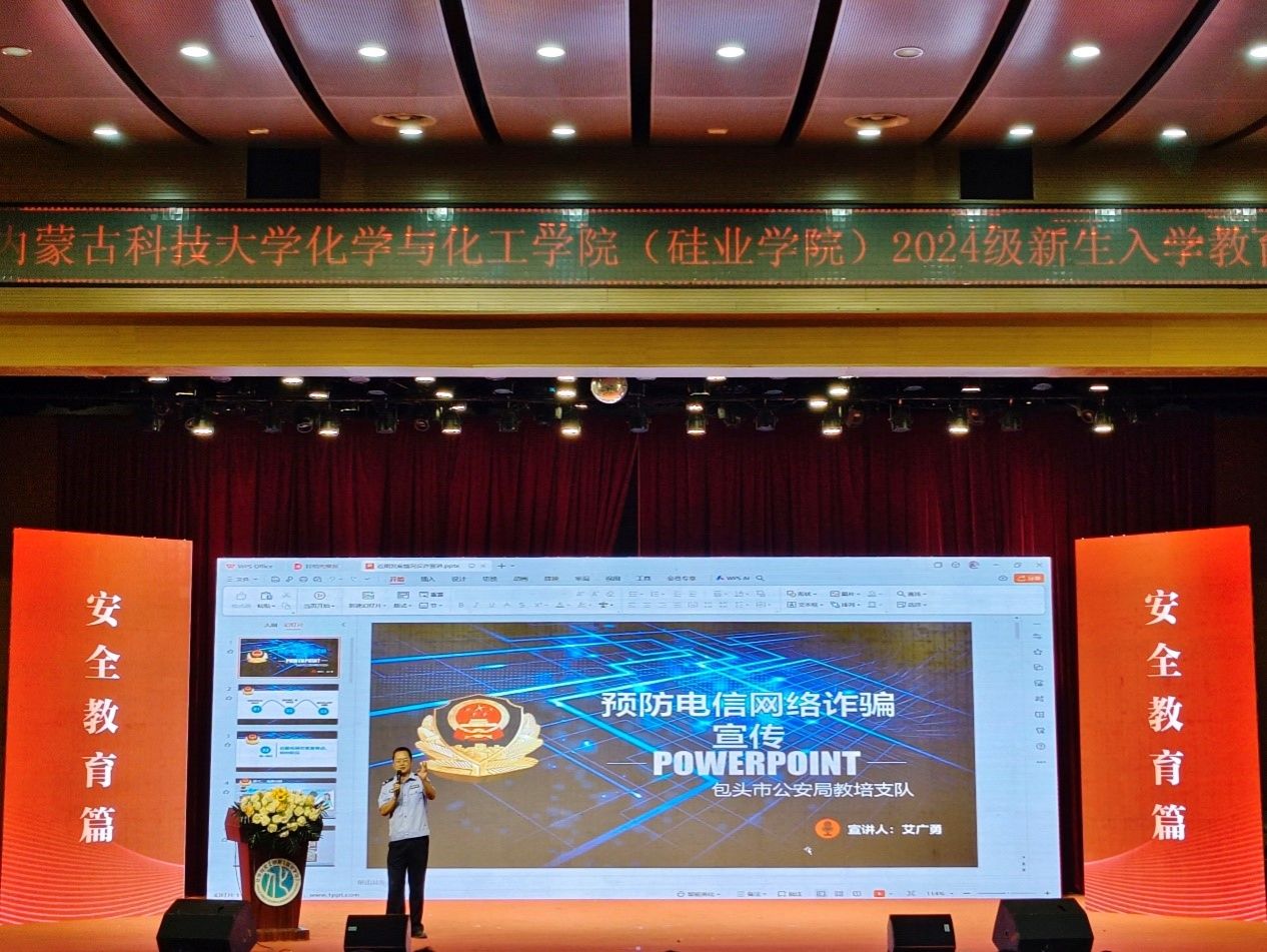 包头市公安局教培支部警务理论教研室主任艾广勇警官做了《预防电信网络诈骗》专题讲座,结合实际案例对网络刷单诈骗、网游交易诈骗、冒充国家工作人员诈骗等一些典型电信诈骗术进行了详细解析,提升了同学们的辨别能力和防范意识,积极引导同学们树立安全责任意识,构建学校安全育人模式,共同创建“平安校园”