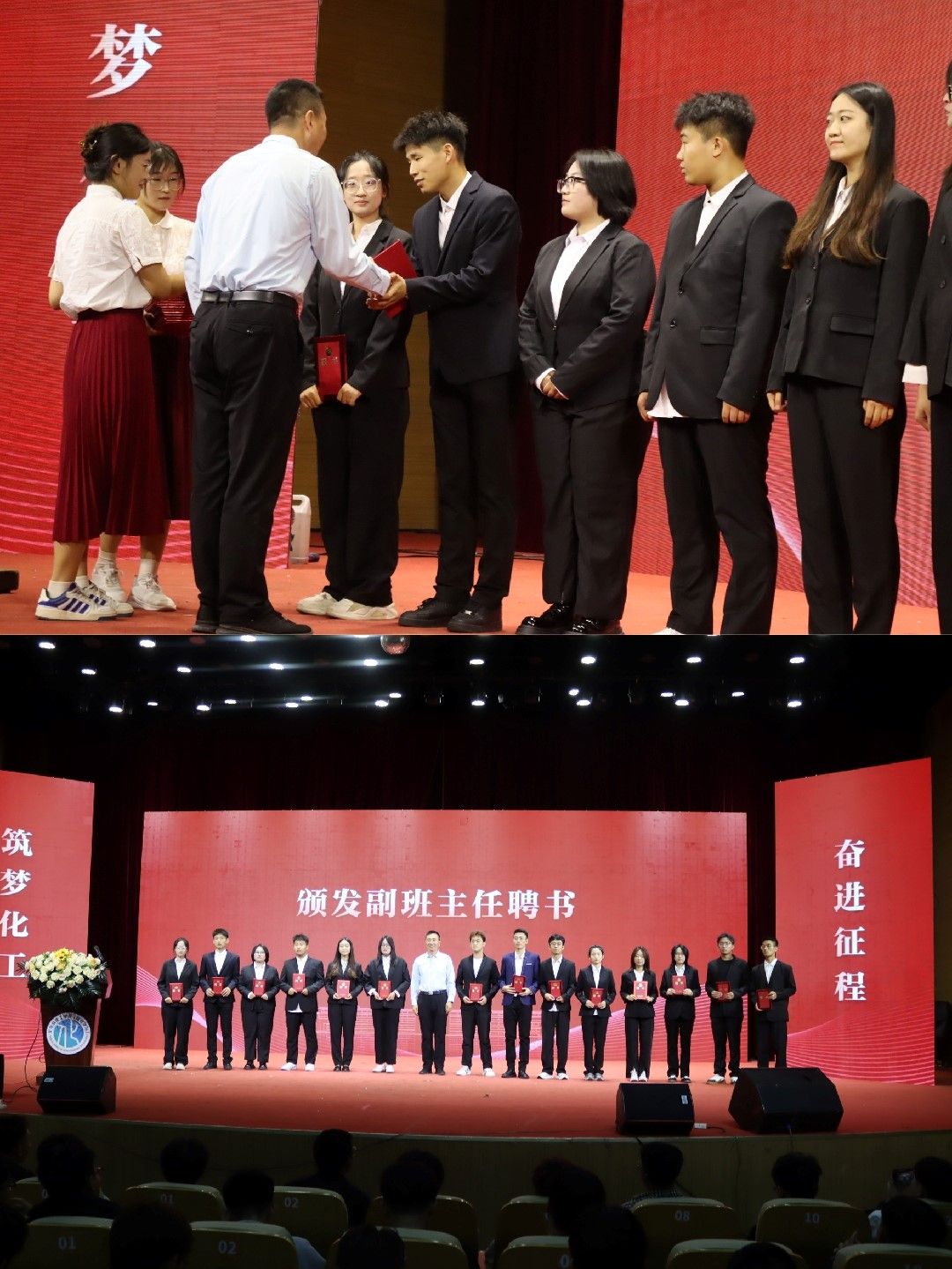上午场最后环节,举行2024级各班级副班主任聘任仪式,公司党委书记杨包生为公司选聘的14位员工副班主任颁发聘书。