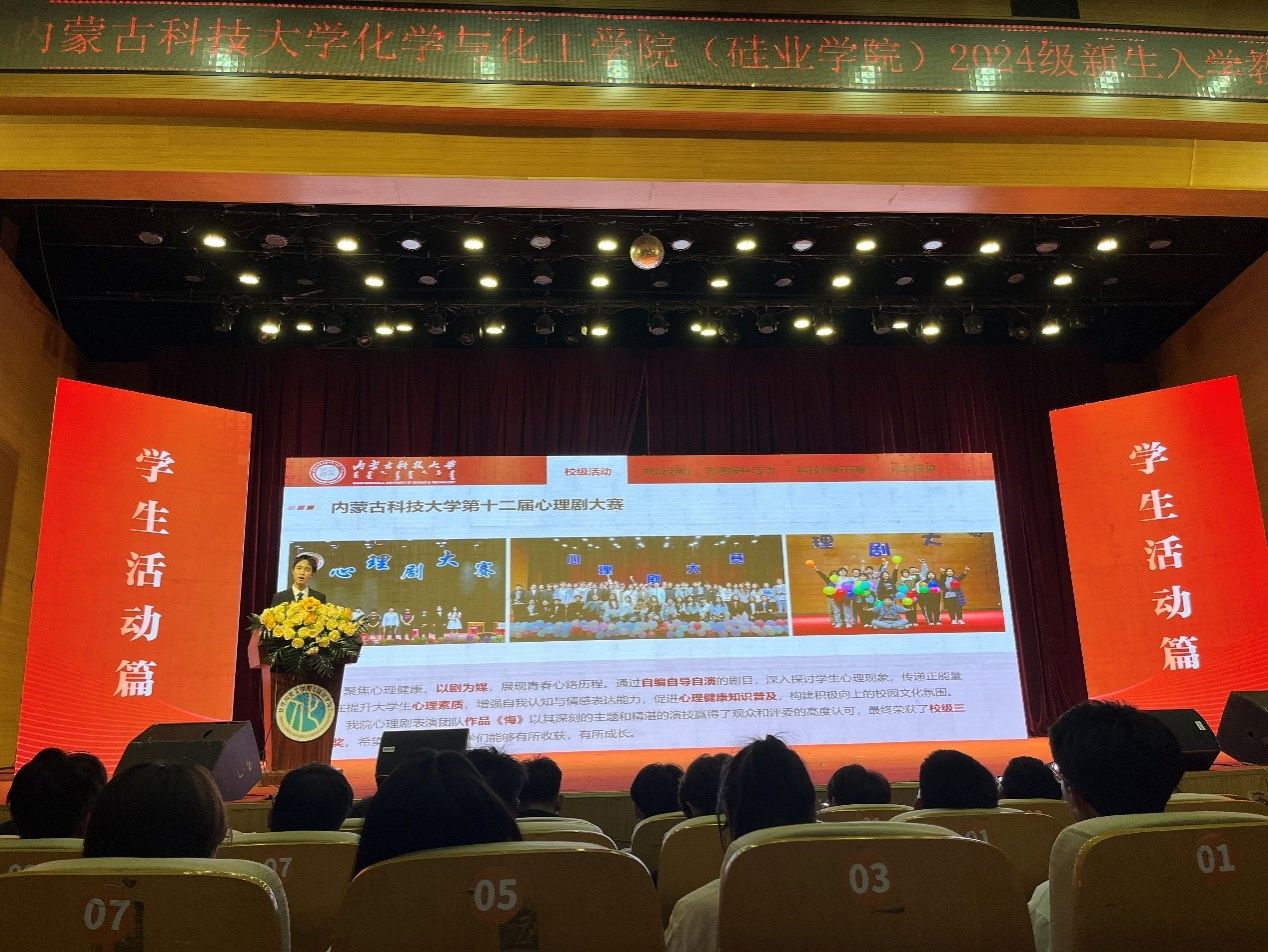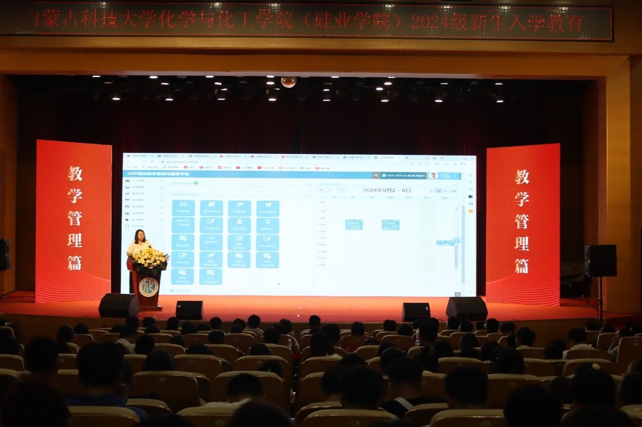 为教育引导2024级新生坚定理想信念,熟悉校史校情,了解学院及各专业情况,遵守校纪校规,积淀爱国荣校情怀,树立远大人生目标,9月7日,学院在音乐厅开展2024级新生入学教育。6776永利集团(硅业学院)党委书记杨包生、经理赫文秀、党委副书记副经理冀虹、副经理庞赟佶、教学办负责人李敏及全体辅导员参加此次活动。