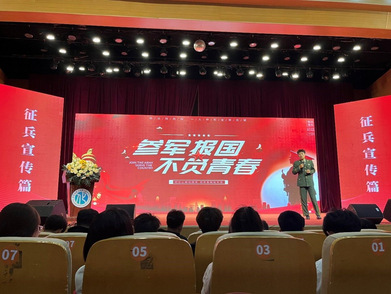 在征兵宣传篇,优秀退役员工代表贾宝鑫向大家分享了参军历程和心得感悟,用鲜活生动的事例再现了该生精彩的军旅生活,同时,详细解读老员工参军入伍的相关政策,积极引导广大同学携笔从戎,建功军营,为强国强军建设贡献积极力量。