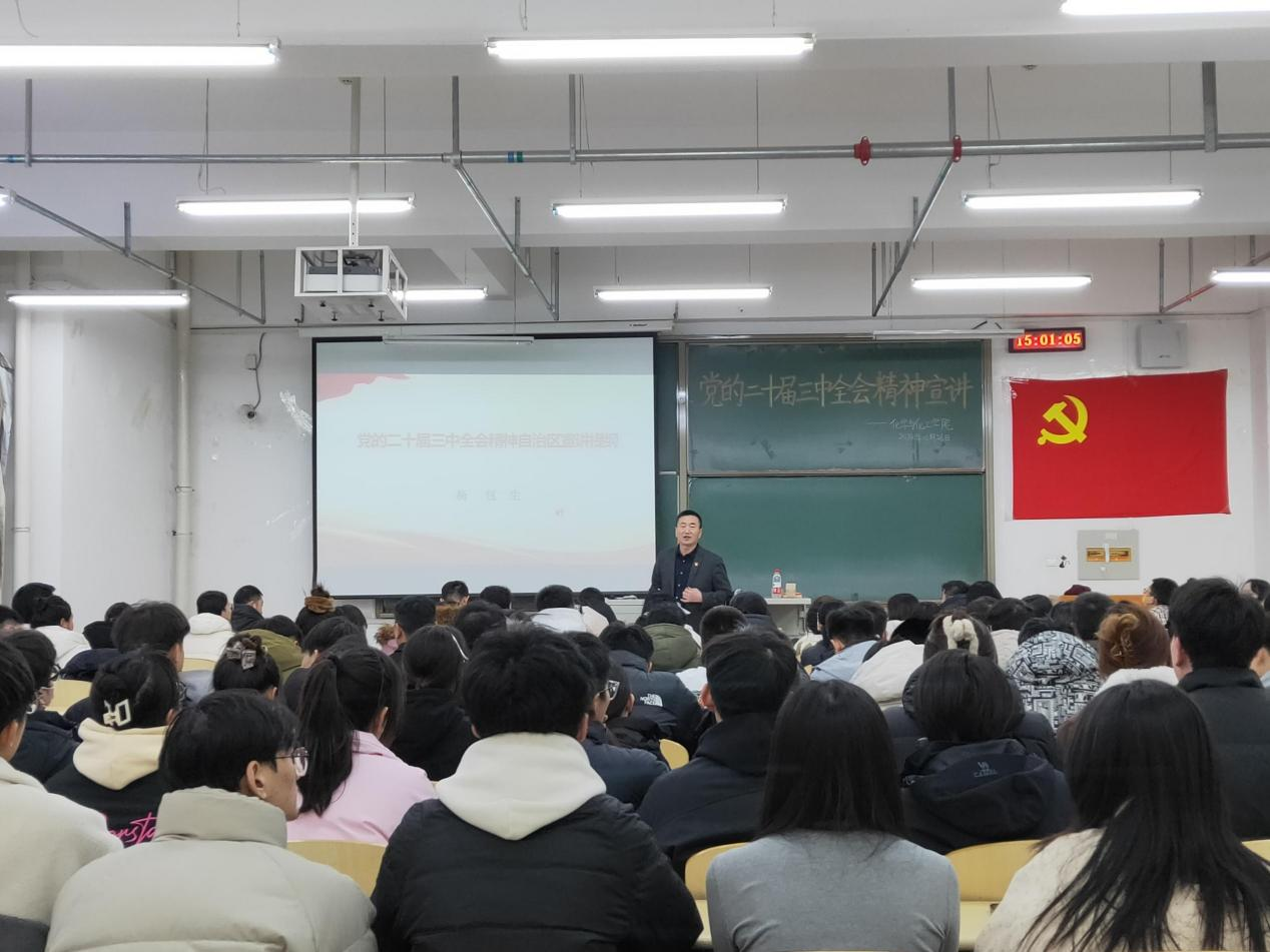 为进一步推动党的二十届三中全会精神入脑入心、走深走实,让广大党员全面深刻领会全会精神,12月26日下午,公司在逸夫楼G203举办党的二十届三中全会精神主题党课,公司党委书记杨包生主讲,学院100余名师生党员参加。