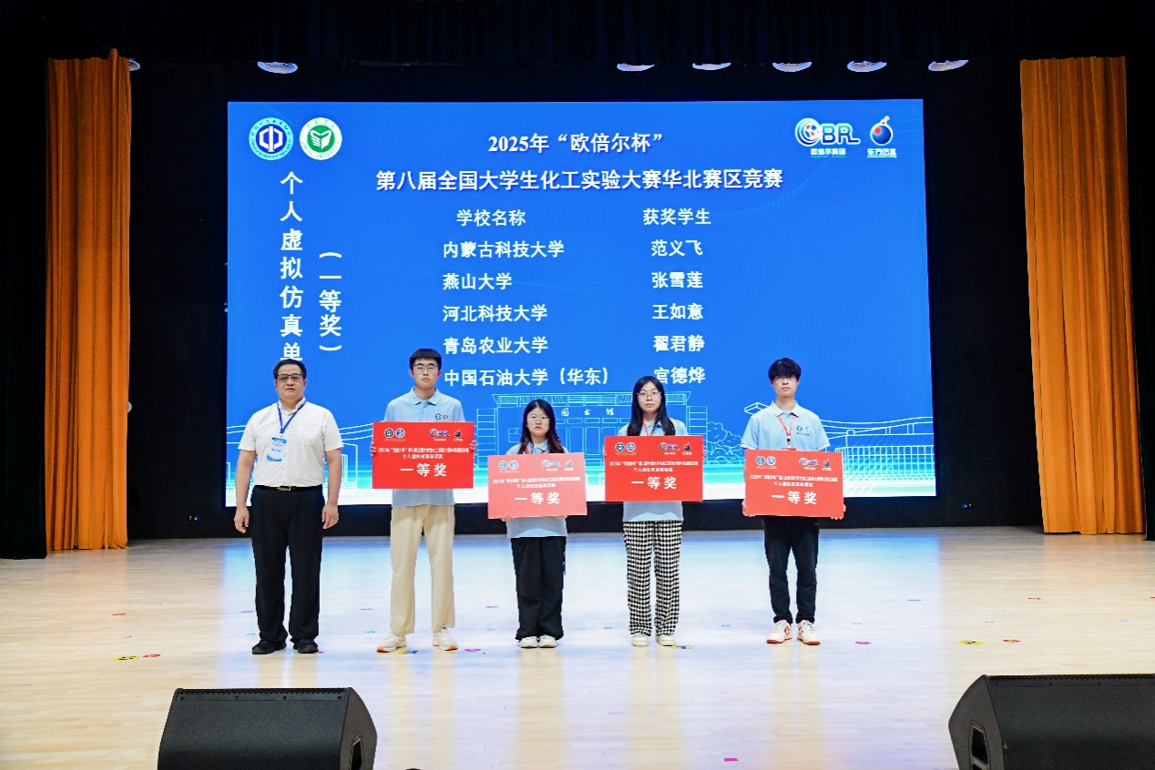 公司化学工程与工艺专业范义飞、张志明、骆彦凌三位同学,在兰大为、陈哲、赵虎老师组成的指导团队精心培育下,凭借过硬的综合素质从激烈竞争中脱颖而出,最终斩获华北赛区团体二等奖及个人虚拟仿真单项一等奖双项殊荣。
