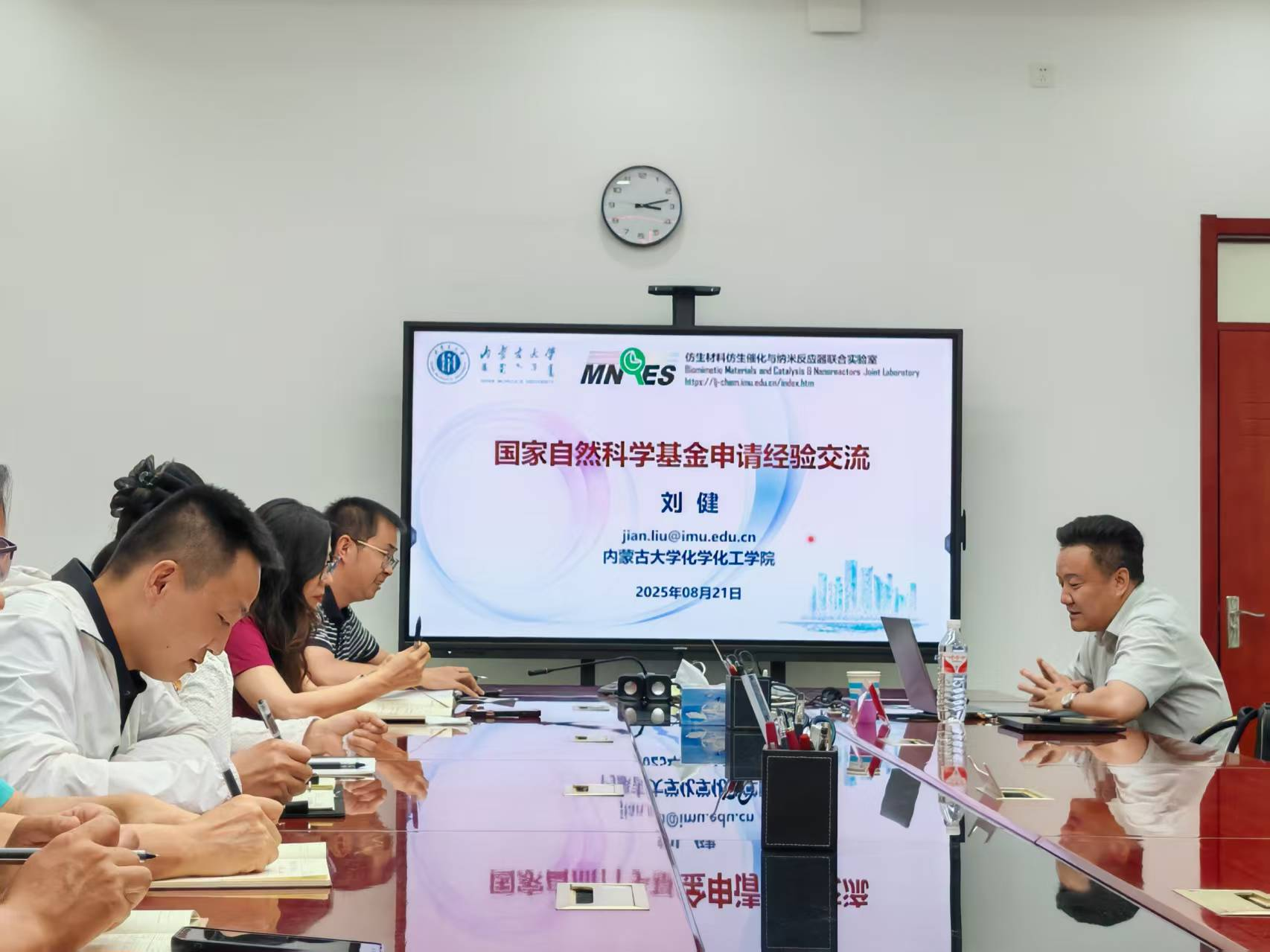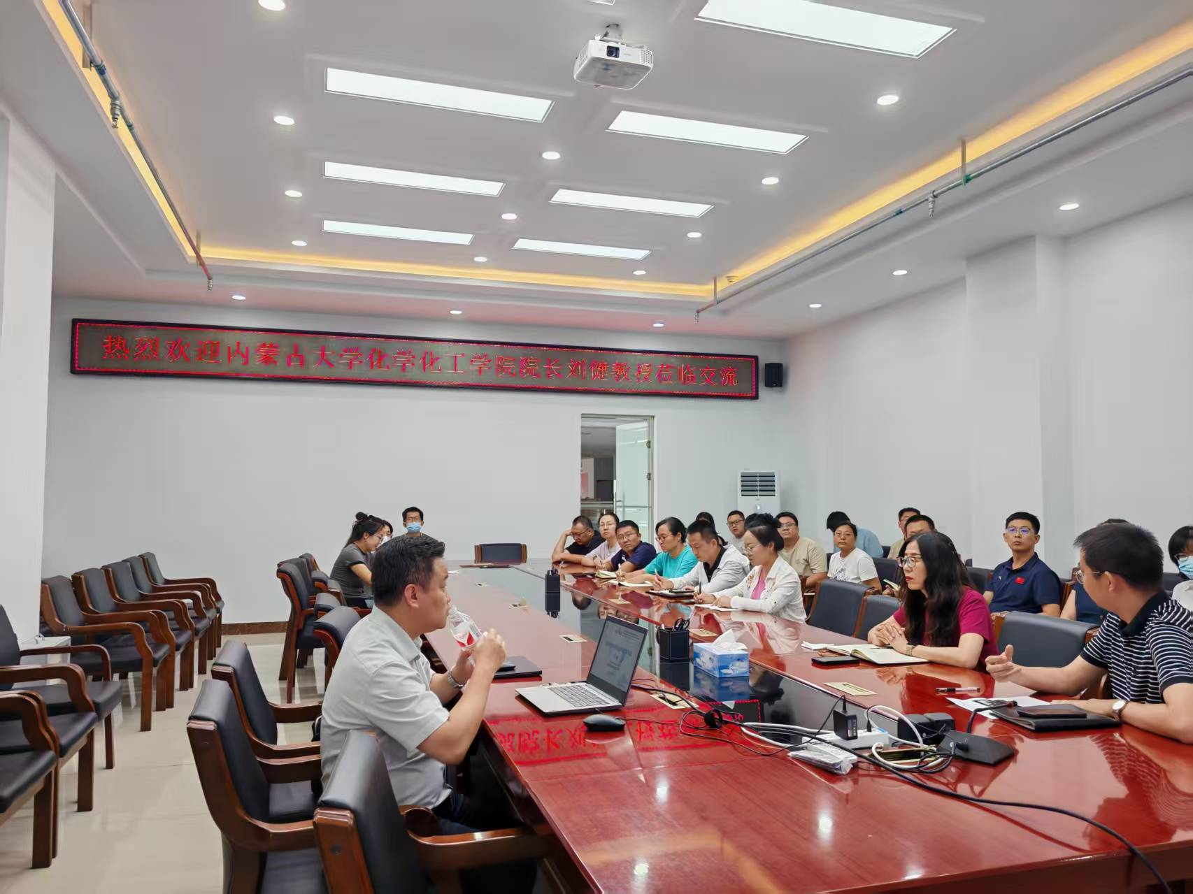 2025年8月21日,内蒙古大学化学化工学院经理、博士生导师刘健教授应邀莅临公司,开展团队建设交流暨国家自然科学基金申请经验分享活动。公司领导、各系主任及青年教师代表参加交流。双方围绕团队建设、科研合作等议题展开深入探讨,为学院学科发展注入新动能。