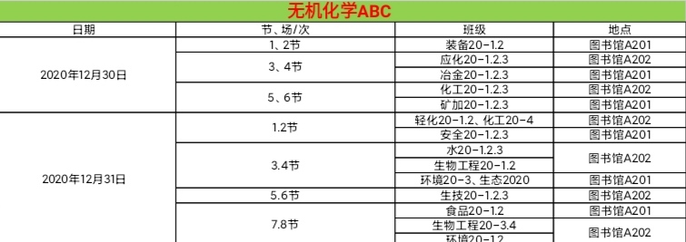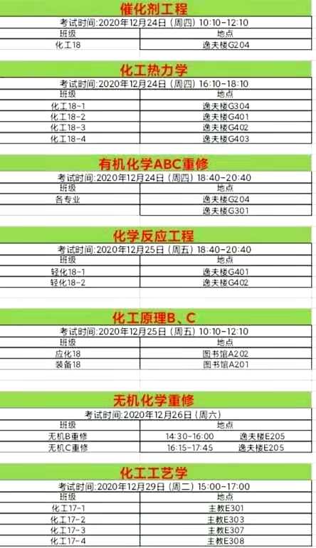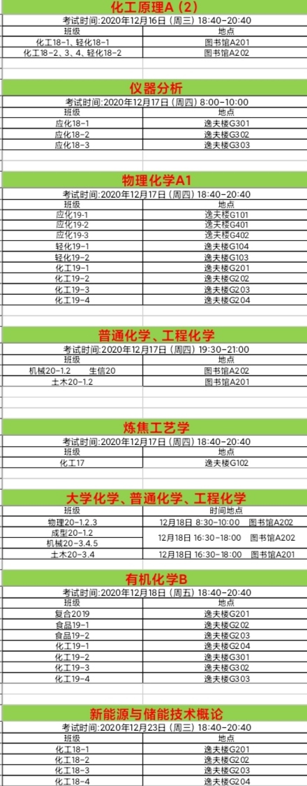 化工学院17—19周考试安排