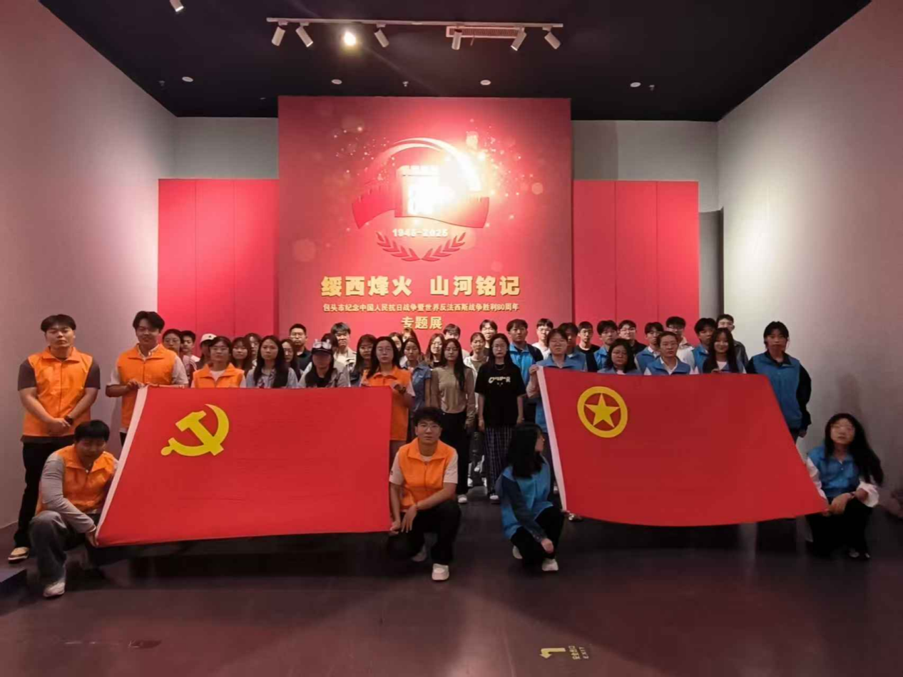 活动中,学院团委与员工第一党支部共同前往包头市博物馆,参观“绥西烽火 山河铭记”——包头市纪念中国人民抗日战争暨世界反法西斯战争胜利80周年专题展。通过实地参观和现场学习,同学们深入了解了抗战历史,并分享了心得体会。同时,各团支部分别组织开展专题讲座、抗战故事分享等形式的学习活动,进一步引导团员青年缅怀革命先烈,传承红色基因。