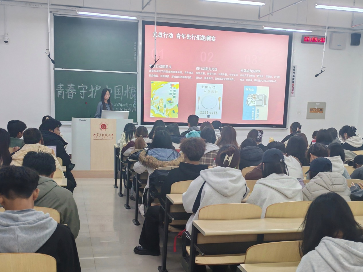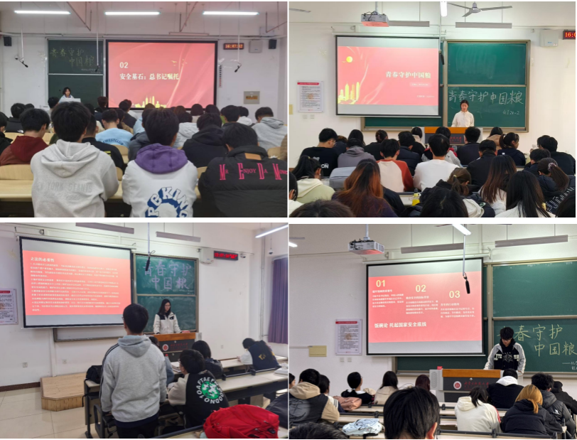 团日活动中,各团支书围绕“青春守护中国粮”这一主线,组织同学们认真学习了习近平总书记关于粮食安全的重要指示精神,并分别从“粮食安全现状、节粮知识普及、青春责任践行”三个方面展开深入学习和交流,进一步增强了团员青年对粮食安全的认识,凝聚起“青春护粮”的思想共识与行动自觉。