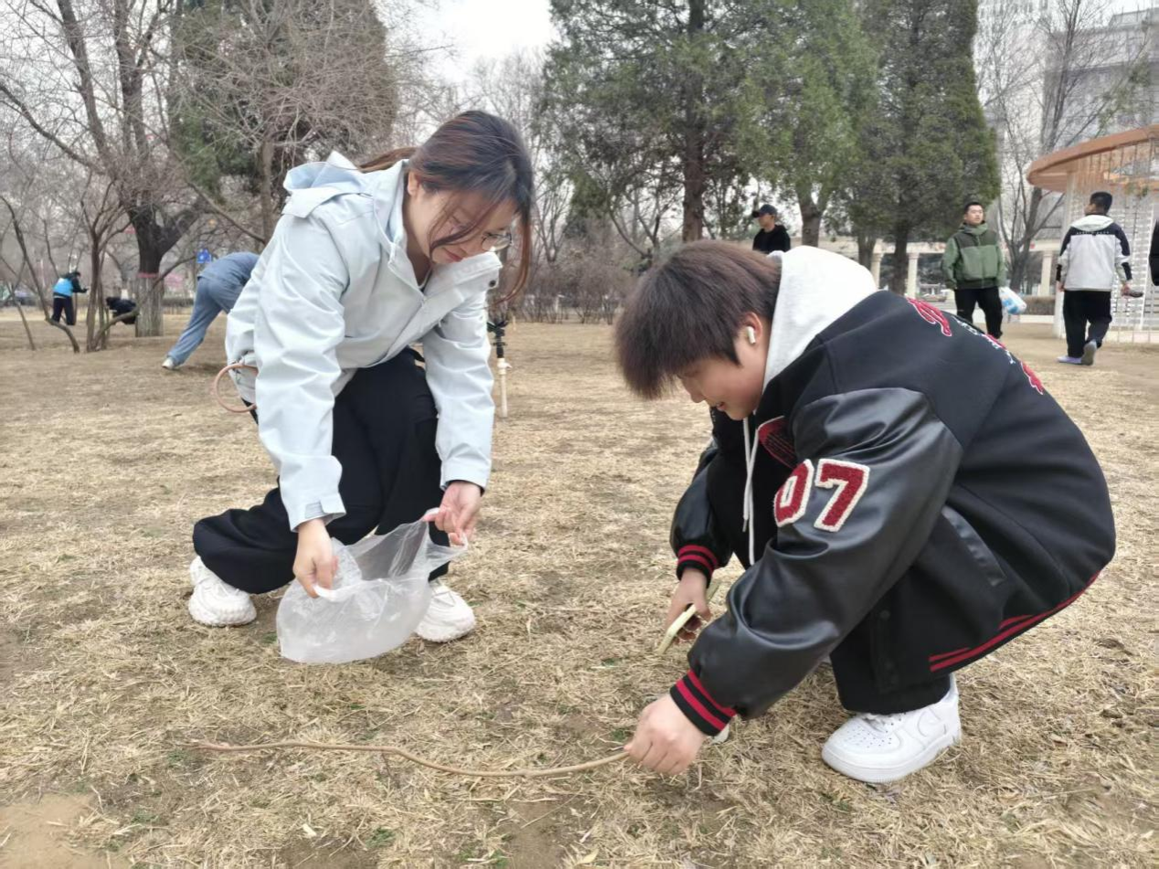 活动中,学员们携带清洁工具,在包头法治公园分组开展环境整治行动。大家分工协作、配合默契,重点对公园道路、草坪、湖边等区域的烟头、塑料袋、废弃包装等垃圾进行细致捡拾,并严格按照垃圾分类标准进行分类装袋。