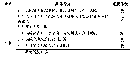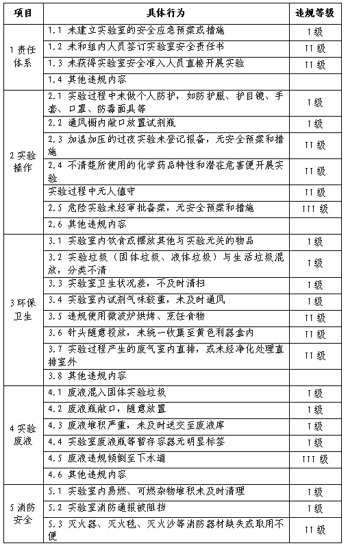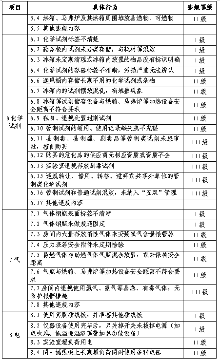 第六条实验室违规行为清单,如下表: