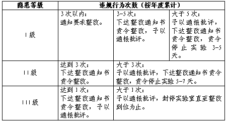 第三章 实验室违规行为惩罚类别及办法